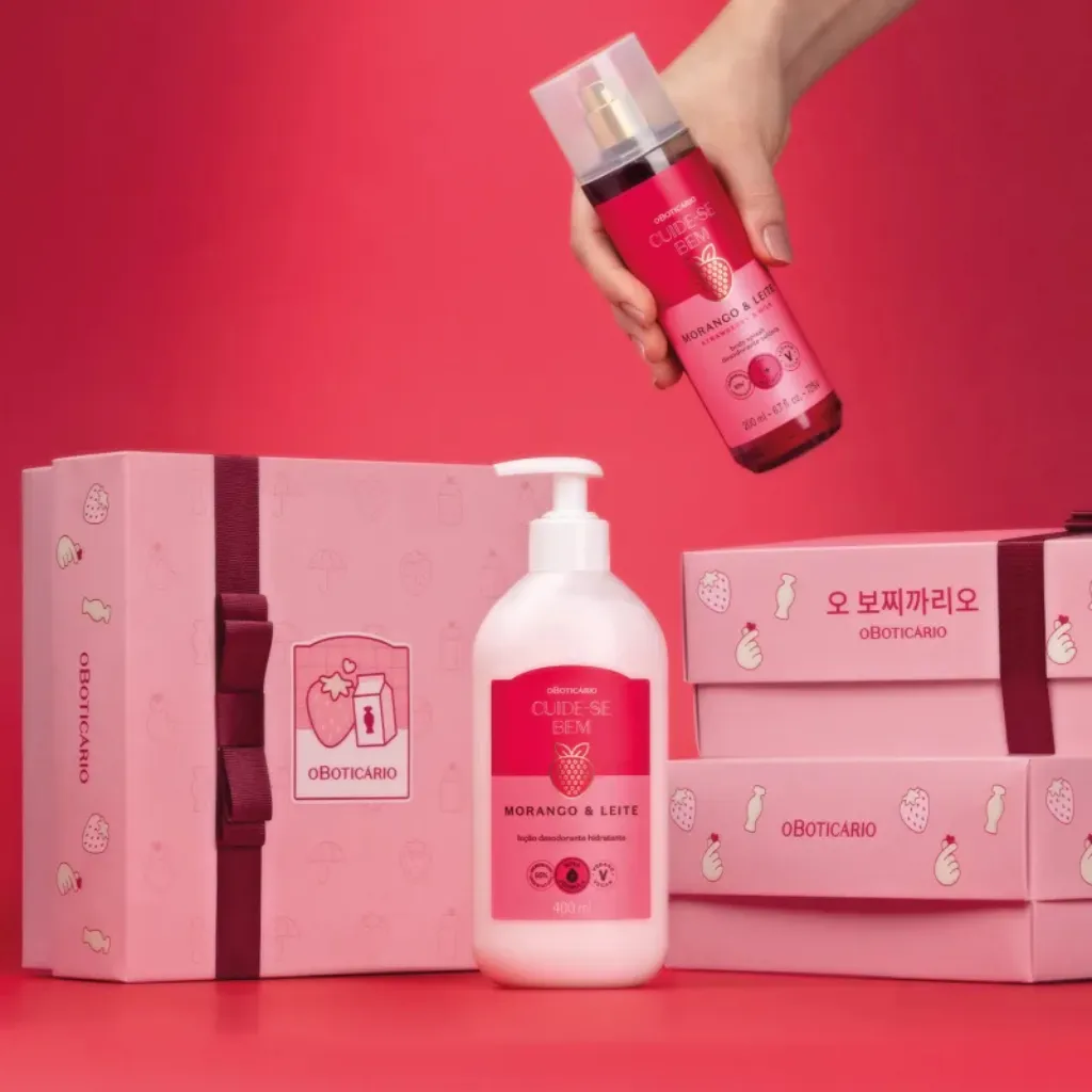 Kit Cuide-se Bem K-Drama Morango e Leite O Boticário – Edição Limitada com Caixa e Adesivos